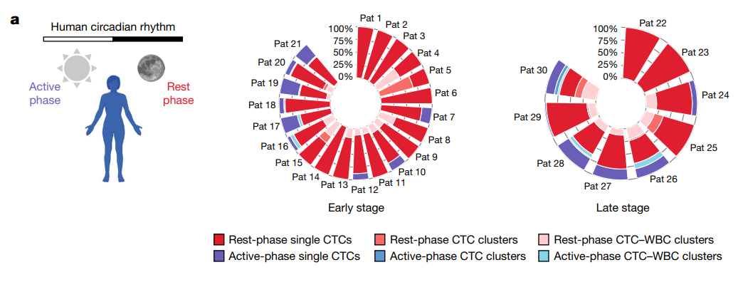 在這項研究中,研究團隊對30名女性乳腺癌患者(21人為早期乳腺癌,9人為IV期轉(zhuǎn)移性乳腺癌)在一天中的不同時間點進行血液樣本的采集,分別是白天活動期間(早上10點)和夜間睡眠期間(凌晨4點),通過對血液樣本的分析,研究團隊發(fā)現(xiàn),夜間睡眠期間采集的血液樣本中存在顯著更高的循環(huán)腫瘤細胞水平。